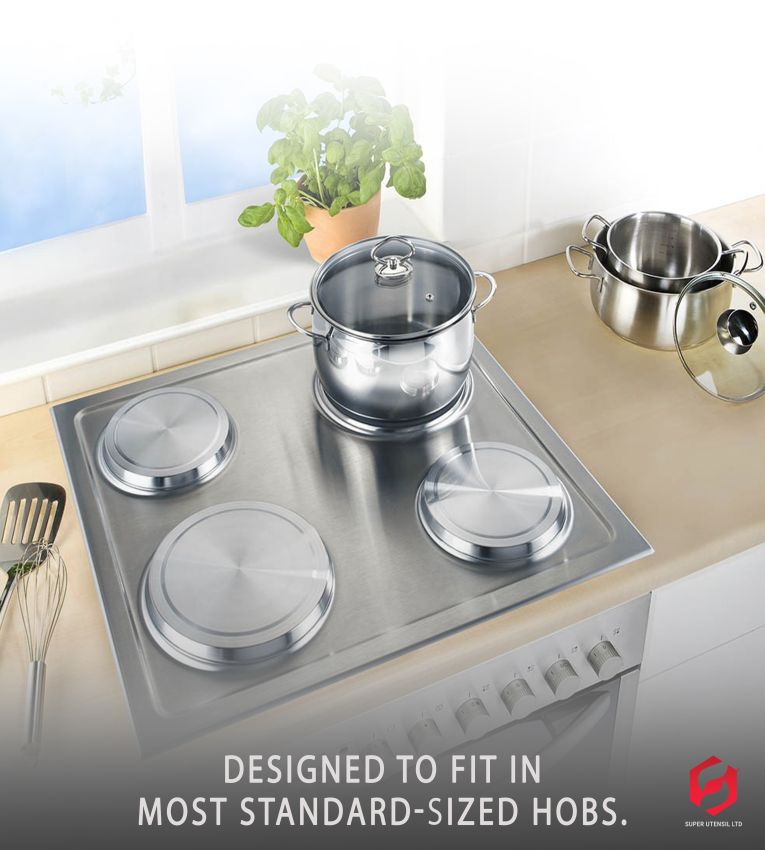 Complete Set: Includes 4 covers—2 small (17 cm) and 2 large (21 cm) to fit most standard hobs.