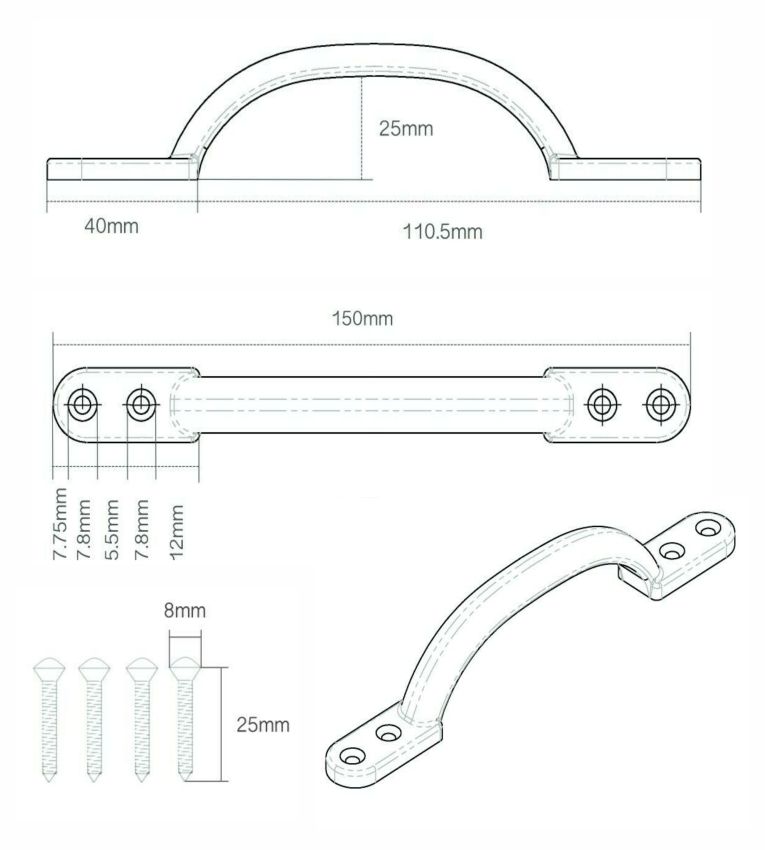 Complete Package: Includes a 150mm cast iron handle and matching screws for hassle-free setup.
