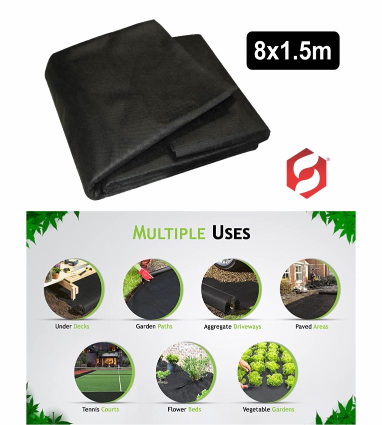 Package Includes: One roll of black non-woven fabric (8 x 1.5 meters), lightweight yet strong—easy to handle without tearing.